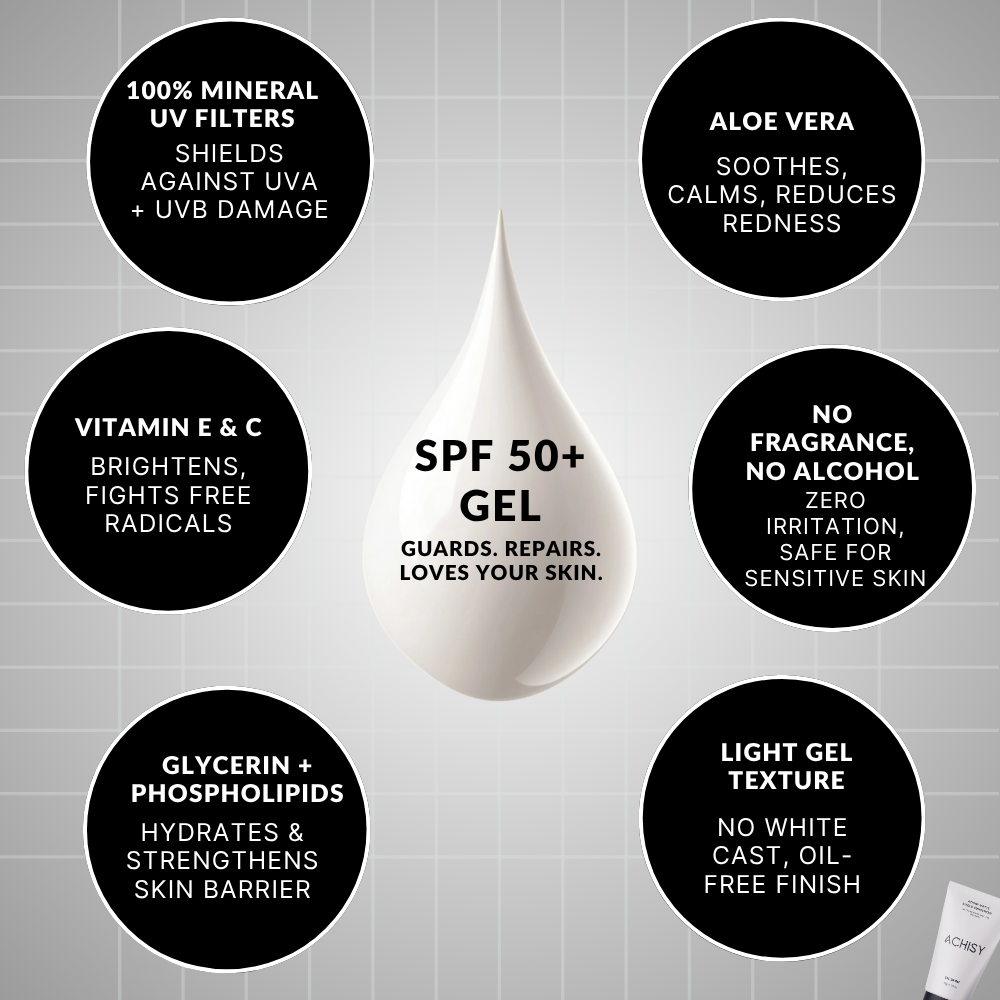 sunscreen gel with SPF 50 PA++++ protection that works in Indian heat, city pollution, and long work hours.
